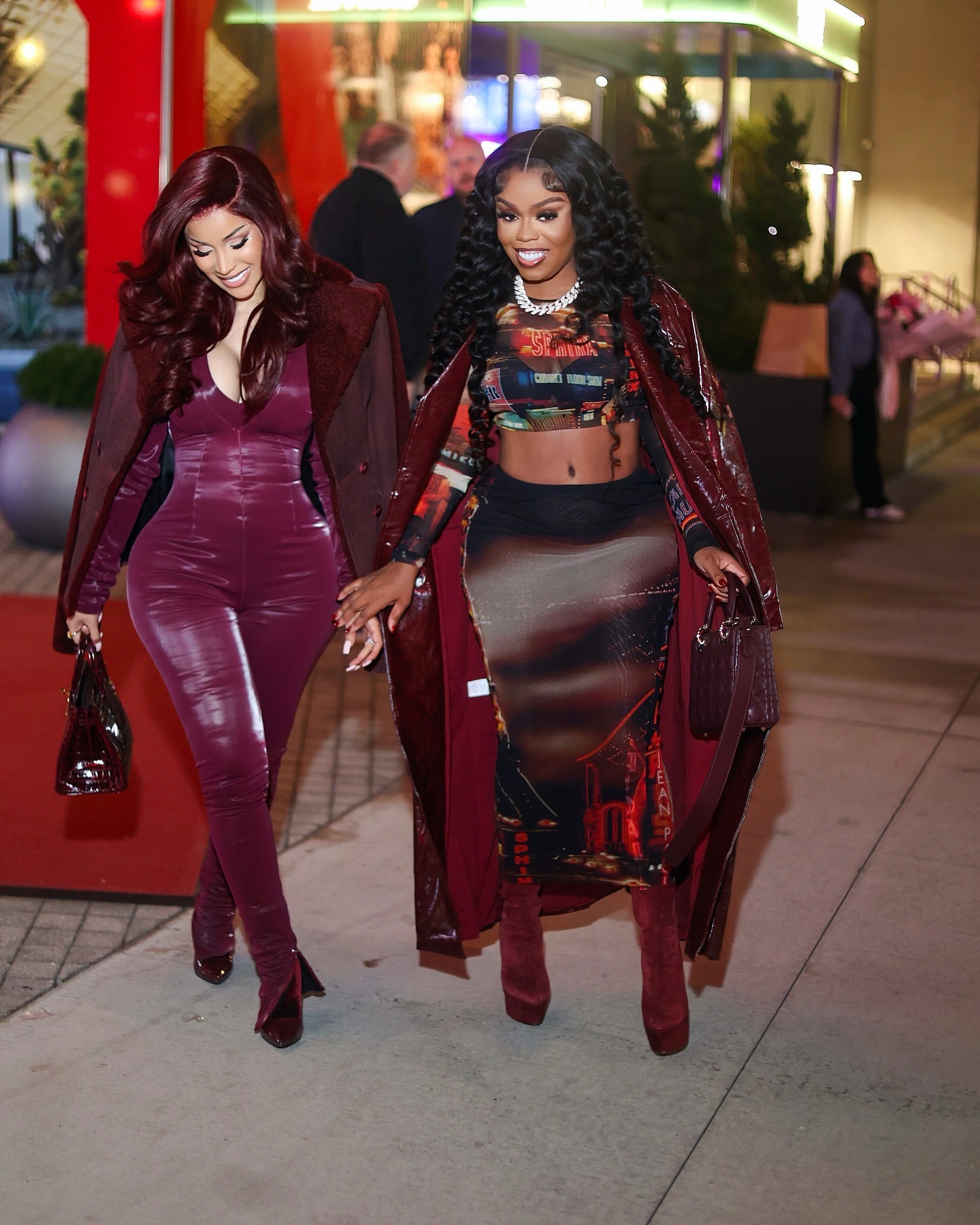 The ladies kept the looks popping with matching bags: Cardi with an Hermes Birkin bag and T rocking a Lady Dior purse: