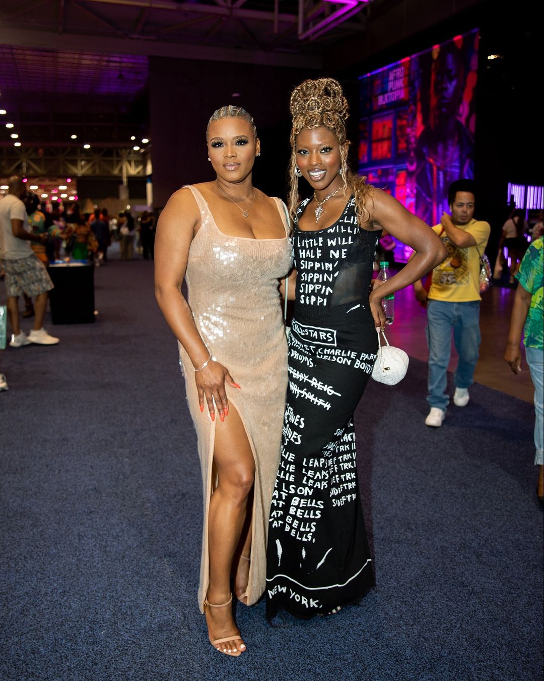Similar to Luckett’s aesthetic, our Fashion Bomb CEO was also at the Mielle pop-up shop and opted for a nude sequins Staud dress, with her signature finger waves as she jammed out with Luckett, Lance Gross and many more.