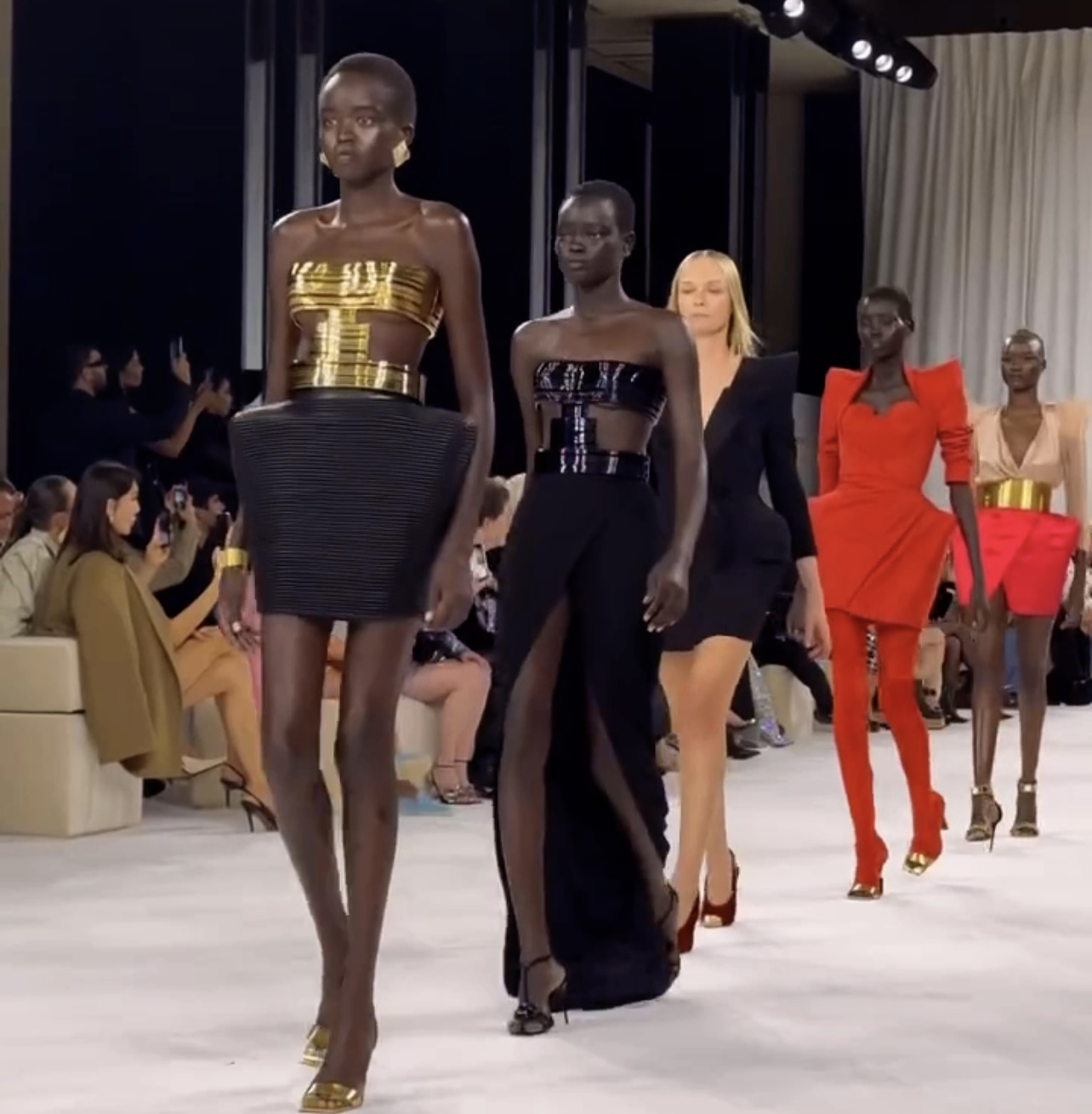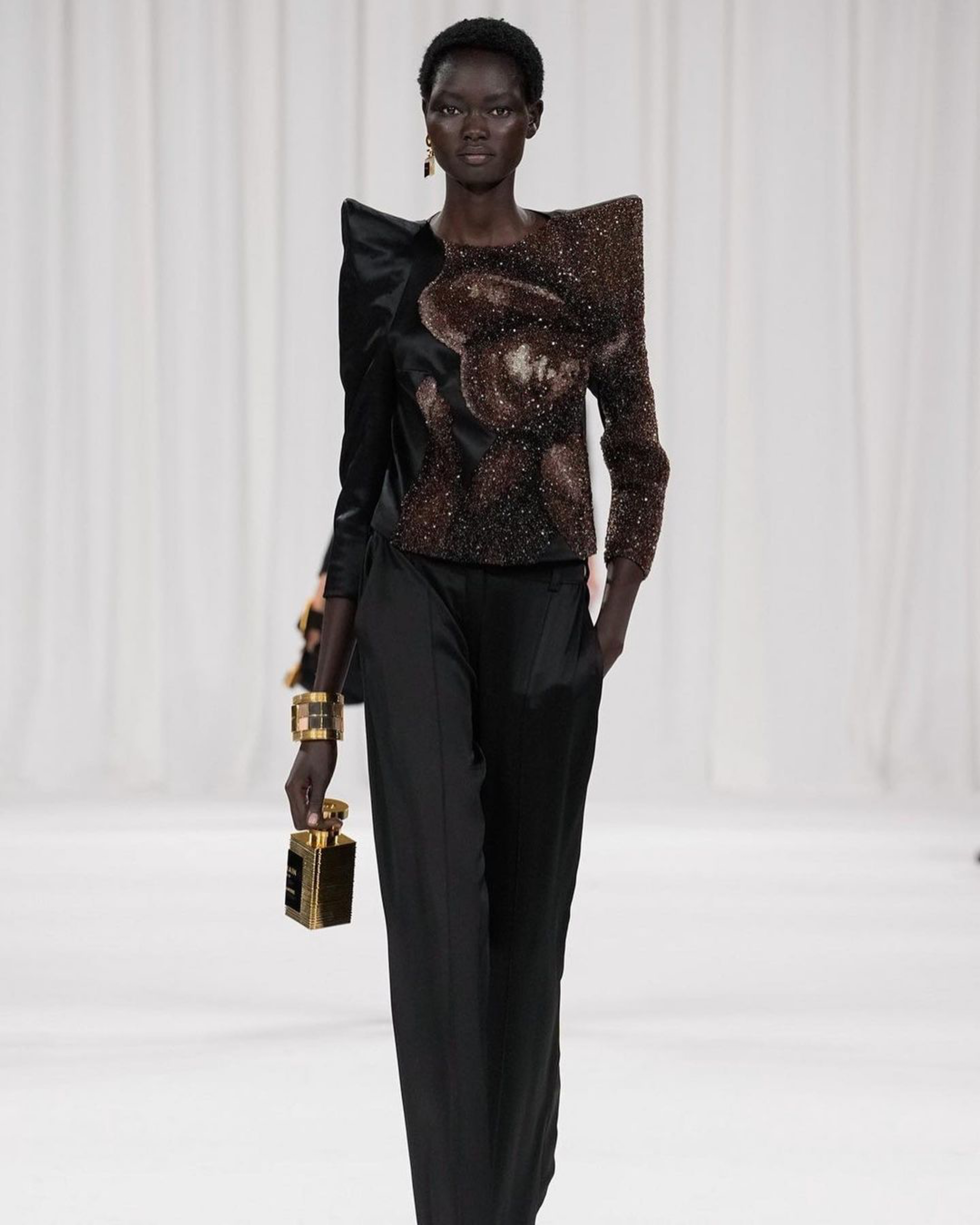 Balmain’s Spring/Summer 2025 offering was more wearable than most. Pointy shouldered blazers in black paired smartly with silk blouses and tailored pants in wool and leather.