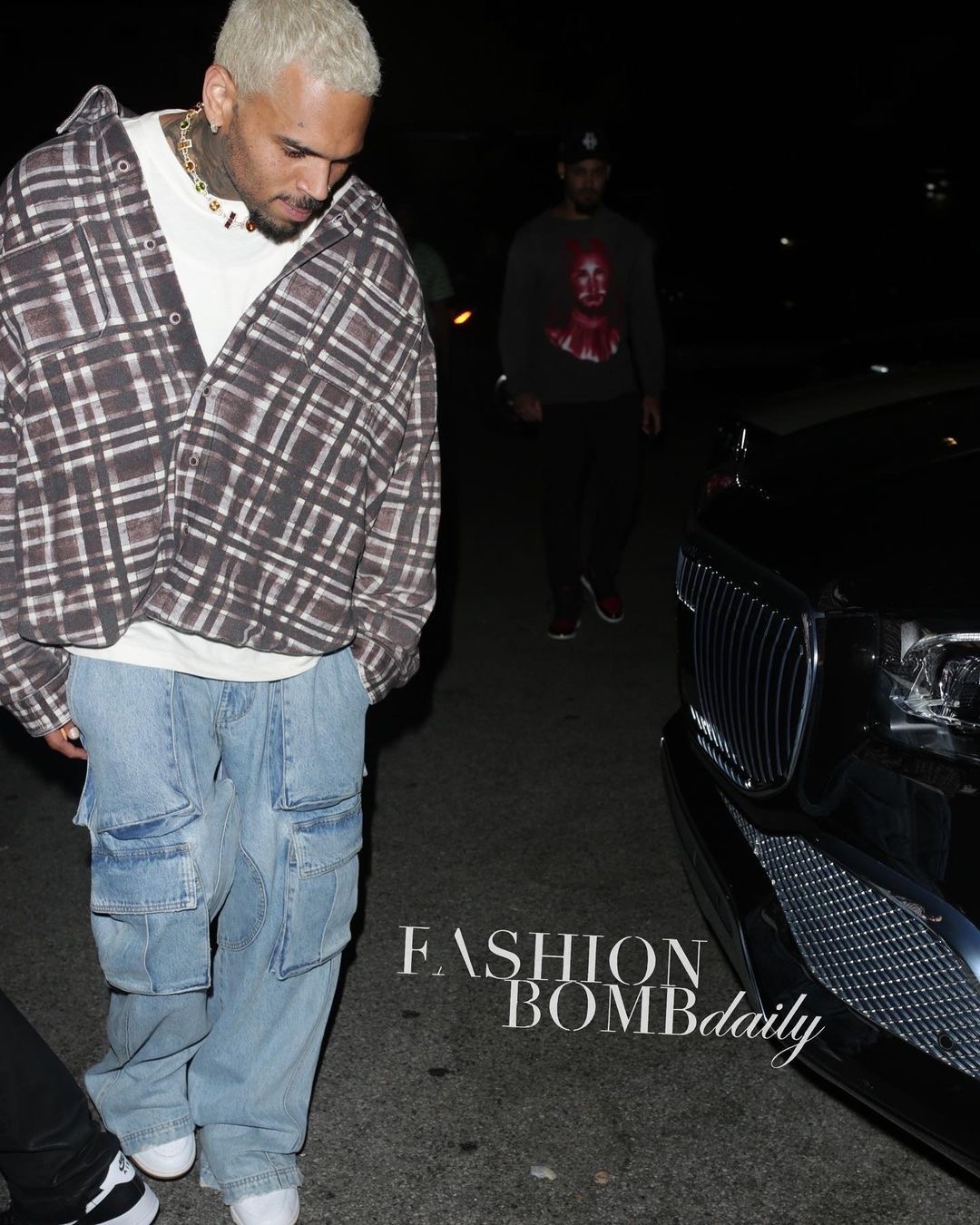 His multicolored diamond necklace looked perfect against his tatted neck and we’re loving his platinum blonde roots.